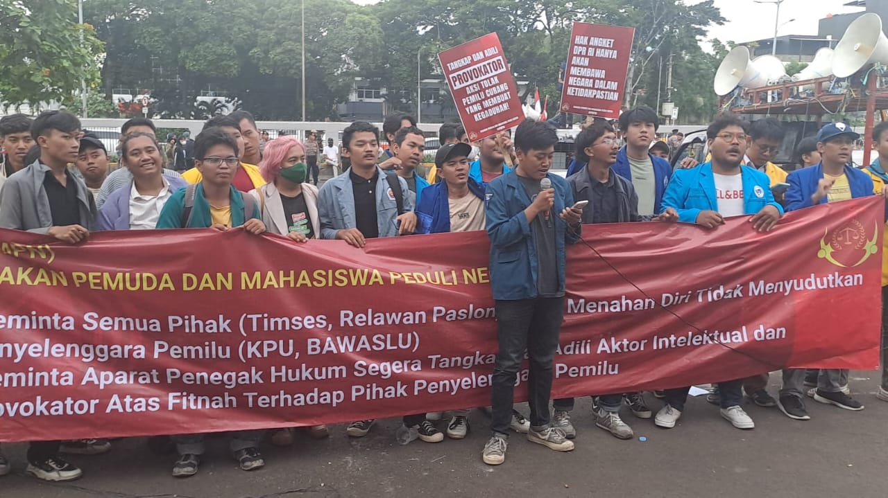 JAKARTA – Sejumlah mahasiswa yang tergabung dalam Aliansi Mahasiswa Jakarta menolak dan tidak akan ikut gabung dengan agenda GERAKAN SALAM 4 JARI yang di inisiasi oleh DEMOS FESTIVAL. Oleh karenanya gerakan tersebut adalah gerakan yang inkonstituisonal. Gerakan Salam 4 Jari adalah gerakan agitasi propaganda menghasut seakan-akan pemilu 2024 terjadi kecurangan. Padahal GERAKAN DEMOS FESTIVAL ini adalah gerakan barisan sakit hati karena jagoannya kalah dalam pilpres.